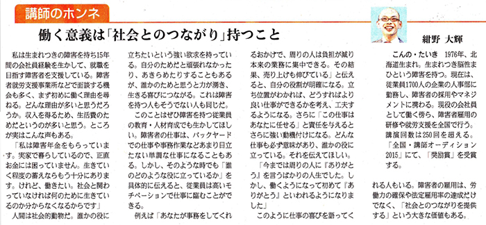 「一歩踏み出すキッカケとなる話をしたい」
