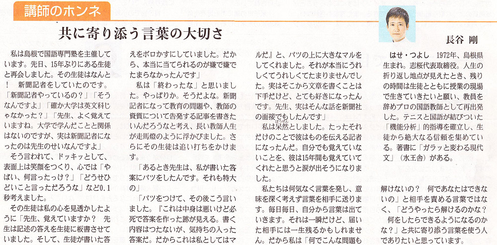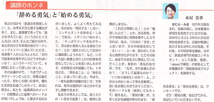 大谷先生の連載のコラムをインターネットで拝見して、すごく面白い先生がいらっしゃると思いました。調べてみたところ志縁塾が行っているとても興味深い全国・講師オーディションが開かれるということで、チャレンジしてみようと思いました。 講師オーディションに参加した後、講師の派遣会社に2社ほど登録をしました。1社からは実際に仕事をいただくことができました。 出ても何も起きないかもしれないけれど、出ることをきめたことは大きな一歩です。それに向けて動けたということも大きな糧になります。仮に本選に出場に出られる幸運に恵まれたのならばそれは大きな経験となり、今後の活動につながっていくはずです。